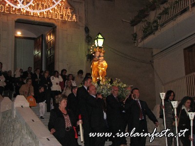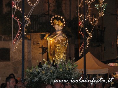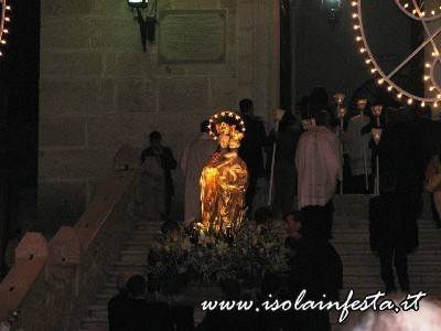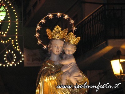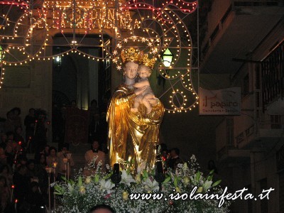 Il prezioso simulacro della Madonna, scultura lignea tardo seicentesca rifinita con lamina d’oro zecchino, nei giorni che precedono la festa, viene intronizzato sull’altare maggiore della Chiesa Madre per la celebrazione del triduo.