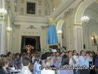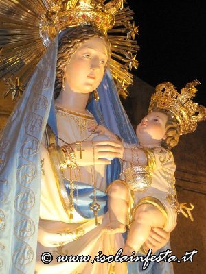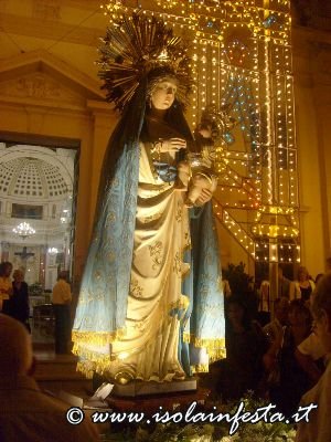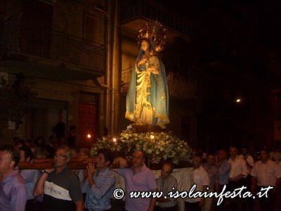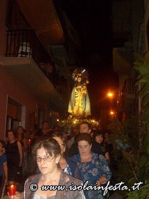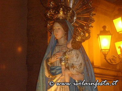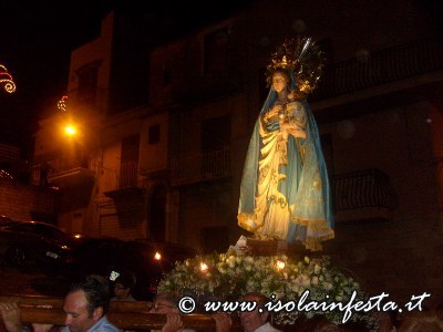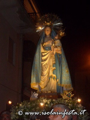 Il giorno dell’ottava della festa, si svolge una seconda processione della Madonna per le vie del paese, ma stavolta viene portata a spalla un simulacro ligneo, copia del simulacro marmoreo che viene portato in processione il 15 agosto.