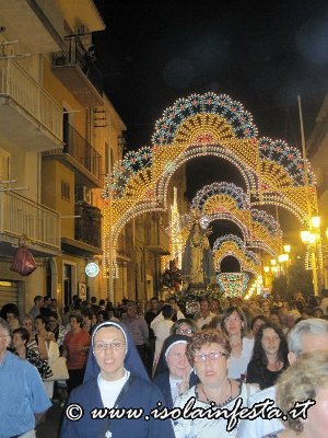 Fanno da cornice alla festa le tradizionali luminarie, i fuochi d’artificio, e le bancarelle di dolciumi.