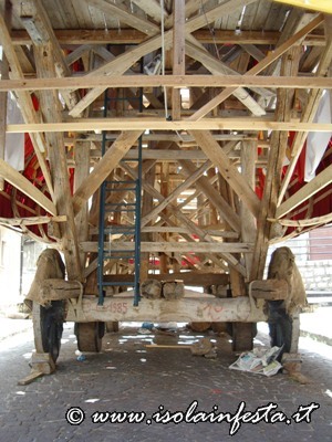 Mentre il disegno della parte basamentale a forma di scafo di nave è una costante comune a tutti i modelli che si sono susseguiti negli anni, diversa risulta la concezione architettonica della torre di cui si contano diverse composizioni frutto dell’inventiva degli artigiani locali che si sono alternati, in diverse epoche, nella costruzione del Carro.