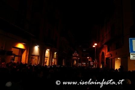 Intorno alle ore 17,00 un festoso scampanio segna l’uscita del fercolo dalla chiesa, tra la commozione di uno stuolo di gente davvero singolare. Subito dopo l’uscita il fercolo viene portato in una stradina adiacente la chiesa “per benedire il mare”.