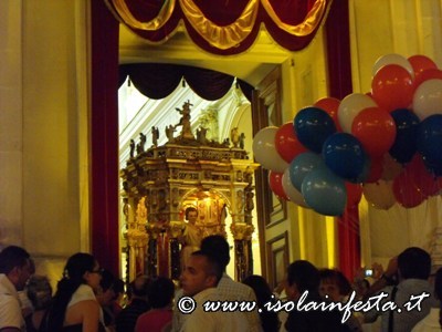 Tutte queste caratteristiche rientrano e sono presenti anche in questa festa, che dopo la ricca giornata di festeggiamenti della vigilia con la solenne svelata del simulacro, la S. Messa Solenne e la successiva prima processione esterna, oggi, giorno centrale dei festeggiamenti, di mattina si celebra il Solenne Pontificale presieduto da un alto prelato, e la sera invece, dopo la S. Messa, il simulacro di S. Vito compie la seconda parte del giro esterno per fare rientro in chiesa verso mezzanotte, quando tra la commozione di tutti i fedeli e le invocazioni incessanti al Santo, le porte della cameretta lentamente velano l’espressivo simulacro.