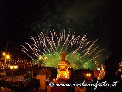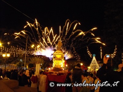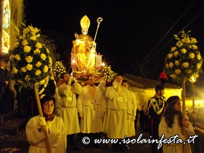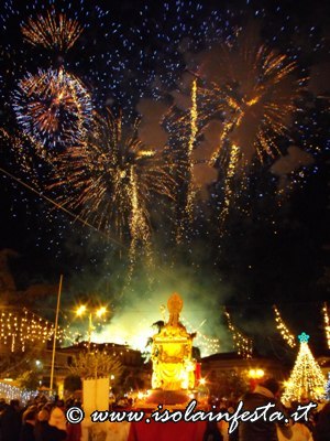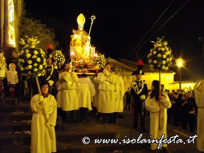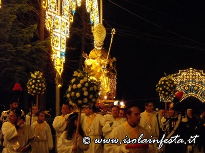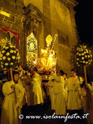 Dopo i fuochi si ritorna di nuovo processionalmente in chiesa per ricollocare il Santo sull’altare maggiore dove rimarrà esposto fino alle festa liturgica di giorno 6, e la benedizione finale con il congedo ai presenti conclude la solenne giornata di festeggiamenti patronali.