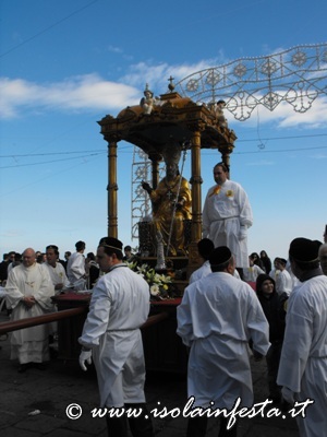 Subito dopo i fuochi, il simulacro del Santo viene sistemato sul fercolo della Madonna del Carmelo e subito dopo inizia la processione diurna per le vie del paese.