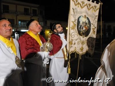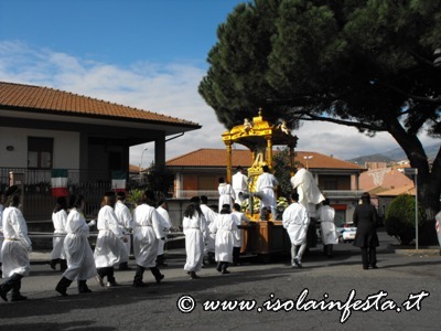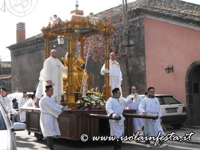 Dopo la S. Messa, con una processione solenne si va nella sottostante piazza centrale del paese, con il Santo portato a spalla, preceduto da tutti i gruppi, associazioni e confraternite che hanno partecipato alla S. Messa.