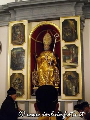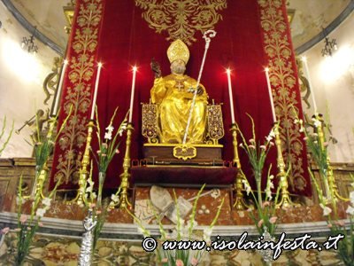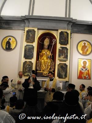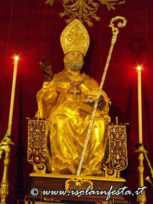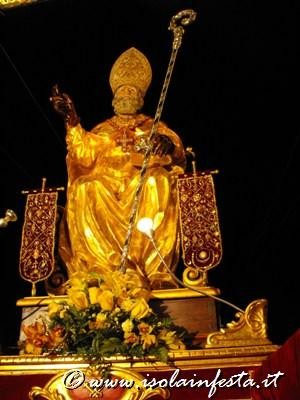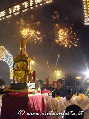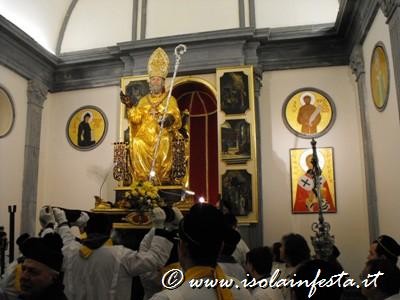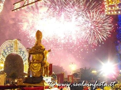 Dopo i fuochi si ritorna di nuovo processionalmente in chiesa per ricollocare il Santo sull’altare maggiore dove rimarrà esposto fino alle festa liturgica di giorno 6, e la benedizione finale con il congedo ai presenti conclude la solenne giornata di festeggiamenti patronali.