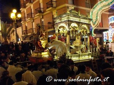 Dopo uno spettacolo pirotecnico la processione prosegue lungo la  “STRATA  RITTA” (la via Roma), accompagnata dal continuo rintocco del “CAMPANUNI”.