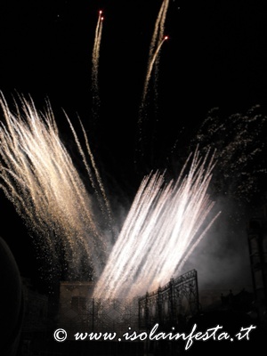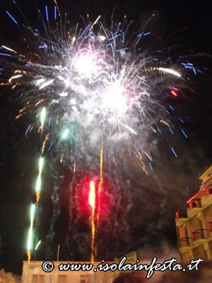 Dopo uno spettacolo pirotecnico la processione prosegue lungo la  “STRATA  RITTA” (la via Roma), accompagnata dal continuo rintocco del “CAMPANUNI”.