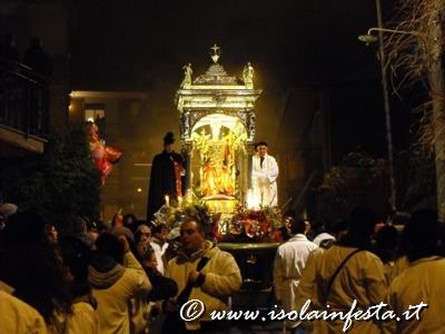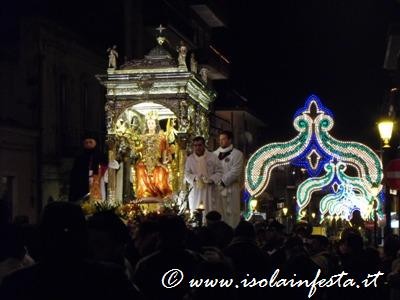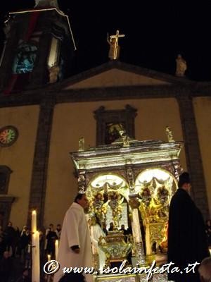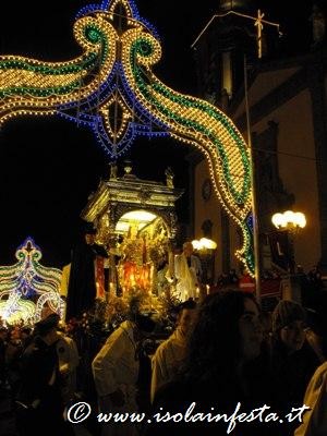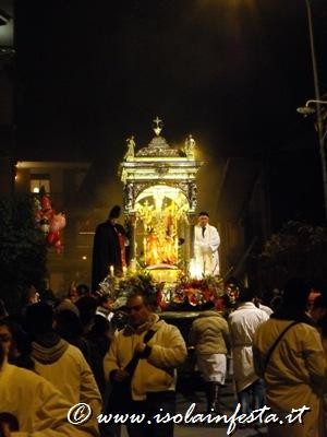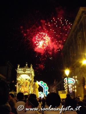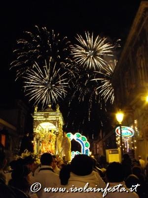Dopo uno spettacolo pirotecnico la processione prosegue lungo la  “STRATA  RITTA” (la via Roma), accompagnata dal continuo rintocco del “CAMPANUNI”.