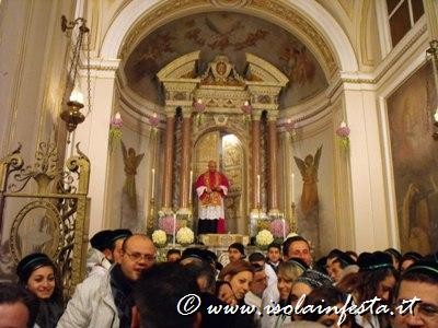 Lungo la navata centrale le invocazioni di giubilo accompagnano la sacra effigie e lo scrigno fino alla stipata navata destra in cui è situata la monumentale cappella. Tolte le “CIAPPETTE” (ganci metallici) che fissano il simulacro al “VAIARDO”, la statua di S. Lucia viene spostata verso il piano della macchinetta. Dopo essere stata elevata all’altezza della porta, l’immagine viene riposta dentro la “CAMMAREDDA” (cameretta).