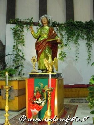 La parrocchia di S. Giovanni Evangelista, nella periferia di Acireale, festeggia solennemente il proprio titolare e patrono del quartiere con la tradizionale processione esterna, tra le case e le strade della parrocchia, con S. Giovanni che visita e benedice tutte le famiglie e i più bisognosi.