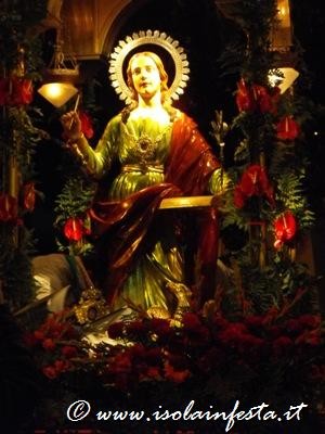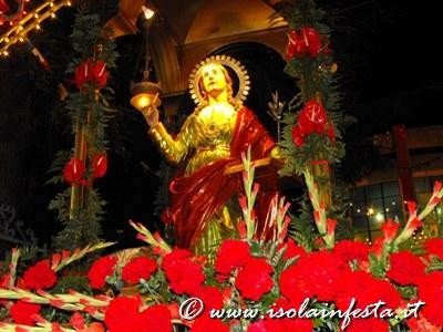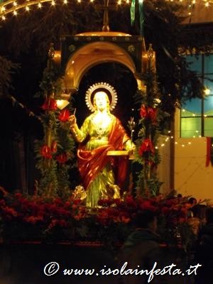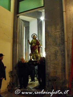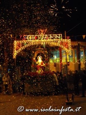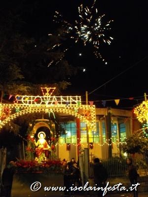 S. Giovanni usce dalla sua chiesa intorno alle ore 19,00 tra lo sparo dei fuochi d’artificio, e dopo aver ripercorso le vie principali del quartiere e la sosta davanti il sacrato della chiesa di S. Michele, fa il suo rientro in chiesa in serata accolto dallo sparo dei fuochi conclusivi e la velata del simulacro.