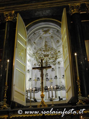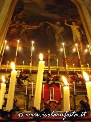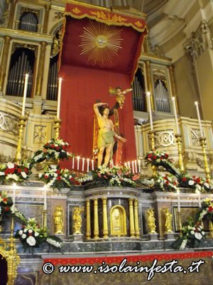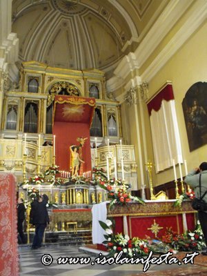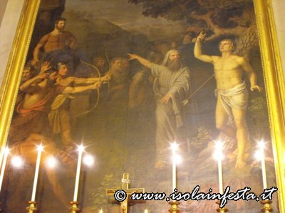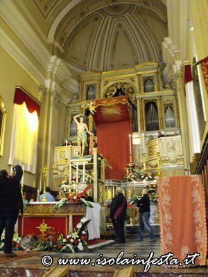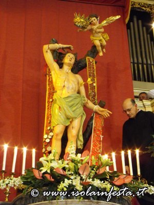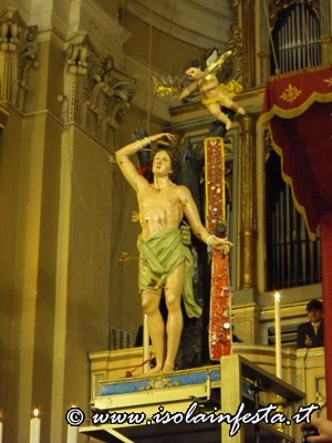 Alle ore 12,00 il simulacro di S. Sebastiano viene accolto nella chiesa di “Gesù Lavoratore” dove il parroco celebra la S. Messa.