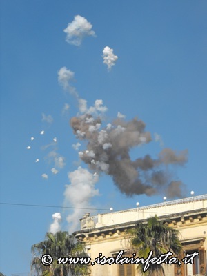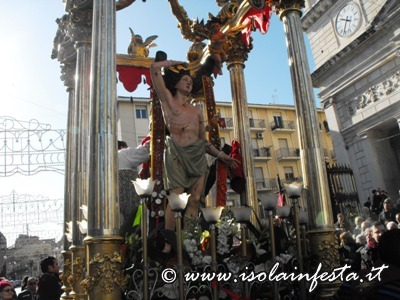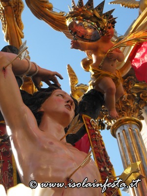 Verso le 16.30 il simulacro di S. Sebastiano esce da suddetta chiesa per riprendere la processione per le vie della città; giunto nella via Ricasoli si esegue la tradizionale e suggestiva calata dell’angelo, il tutto tra il lancio di volantini di carta colorata, lo sparo dei fuochi d’artificio e le grida di “Viva S. Sebastiano”.