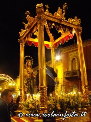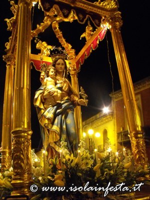 Inizia la solenne processione per le vie del paese, ed al termine, la Madonna rientra in chiesa ed il suo simulacro viene velato all’interno della sua cappella tra gli evviva dei fedeli presenti in attesa di poter riveder il suo volto per la festa dell’anno successivo.