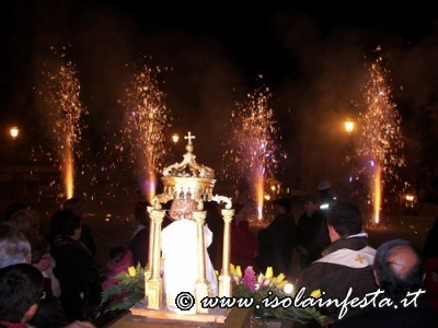 La solennità è annunciata dai colpi a cannone a mezzogiorno. Alle sedici, in chiesa madre, i bambini del paese si riuniscono per rendere omaggio a Gesù Bambino, e offrire le offerte per i loro fratellini più bisognosi e bruciare le letterine, dove sono scritte le preghiere che i bambini porgono a Gesù. La sera, la messa solenne è annunciata dai colpi a cannone. I fedeli in chiesa trovano già sistemata la statuetta del Bambino, adornata da una veste bianca con ricami d’oro, all’interno del tronetto settecentesco adoperato per la processione.