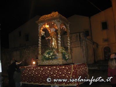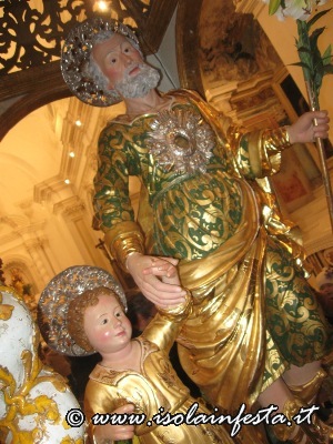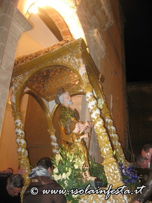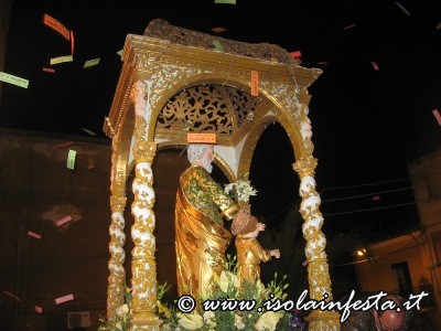 Infatti, allo sparo dei mortaretti e al suono delle marcie della banda, l’artistica statua del Patriarca viene trionfalmente uscita dalla sua chiesa per toccare le parti principali della città.