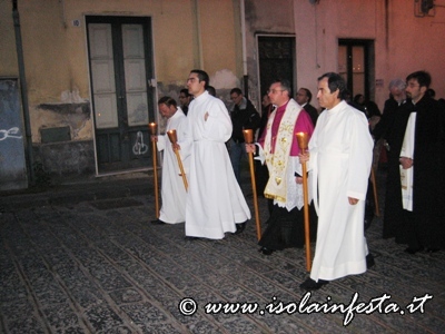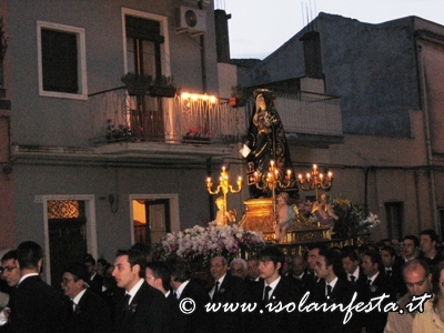 La Beata Vergine Maria, in tarda serata è entrata nella chiesa madre del paese, posta sulla collina storica, ove sosterà fino al Venerdi Santo, per poi uscire in solenne processione per la processione funebre del Cristo Morto.