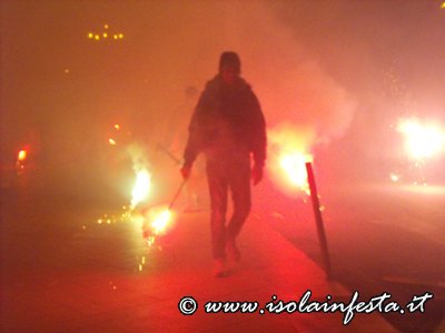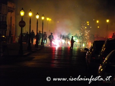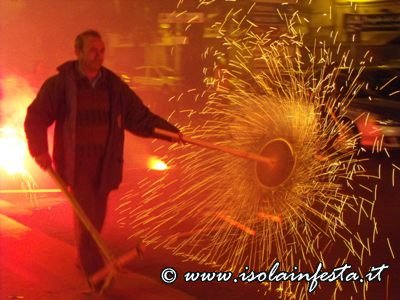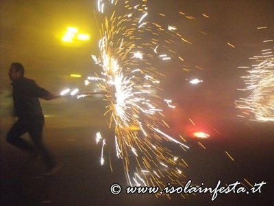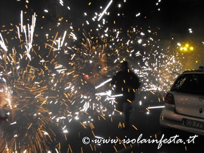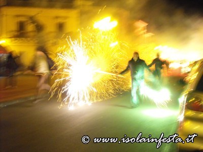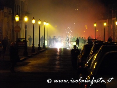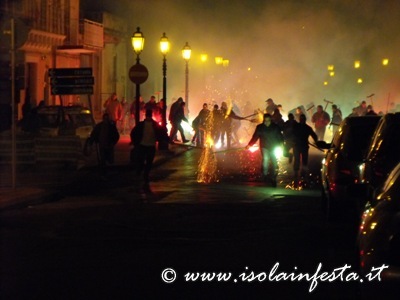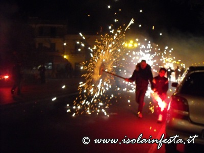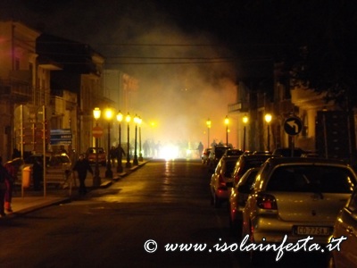Mentre la fiaccolata gira per le vie del paese dal “Calvario” o nei dintorni del Santuario, di tanto in tanto vengono sparati dei colpi a cannone e nel cielo si intravede in lontananza del fumo bianco che è quello prodotto dalle fiaccole.