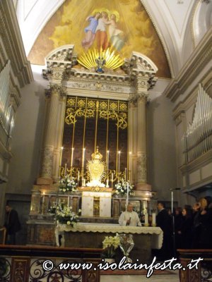 Intanto ai piedi dell’altare maggiore vi è posizionata la corale parrocchiale “Don Salvatore Romeo” che intona l’inno ai Santi Martiri.