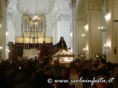 L’intera giornata del Venerdì Santo è vivacizzata da un via vai dei tanti fedeli, che si recano come consuetudine a rendere omaggio al Cristo Morto e all’Addolorata . Nella serata si ha la celebrazione della “Passione del Signore” che si conclude con la processione del Cristo Morto, dell’Addolorata e di San Giovanni per le vie del paese. Ogni viagrandese senza distinzione di età partecipa alla processione, e mette in mostra un evento straordinario, che con passo lento si susseguono, in un silenzio che è segno di rispetto verso la Madre Addolorata per la morte del proprio figlio; tutti avvolti in religioso silenzio che non è la parte di un copione scritto, ma un gesto che pulsa dritto verso il cuore di ognuno.
