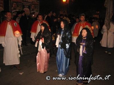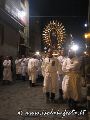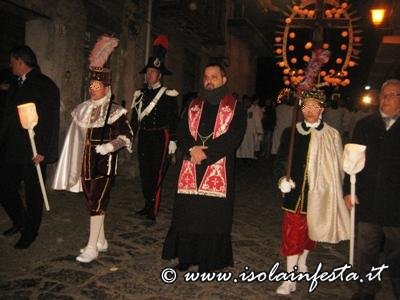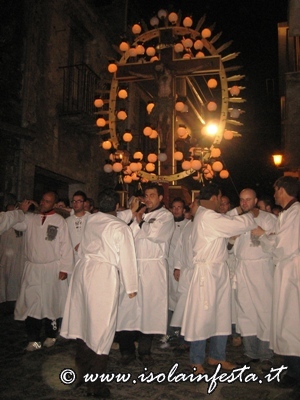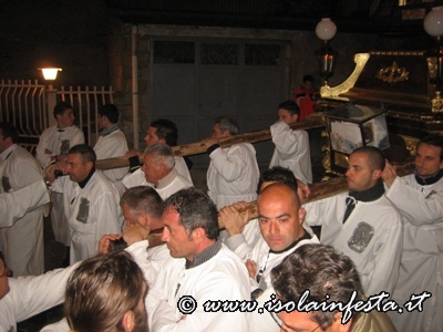 Durante il percorso inoltre, i devoti portatori dei due fercoli invocano continuamente il SS. Crocifisso e la Madonna Addolorata.