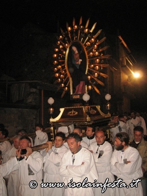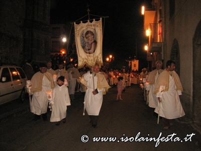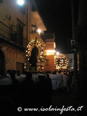 La processione inizia alle ore 20,00 dalla chiesa di S. Pietro, dove vengono custoditi durante l’anno i due venerati simulacri, e percorre le vie principali del paese, passando dal sacrato della maggiori chiese del paese per un momento di preghiera.