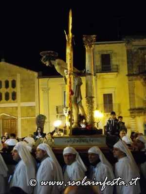La processione penitenziale inizia dalla chiesa madre intorno alle ore 10,00 con i fedeli che portano l’espressivo ed artistico simulacro del Cristo alla Colonna messo sulla sua artistica “varetta” a spalla.