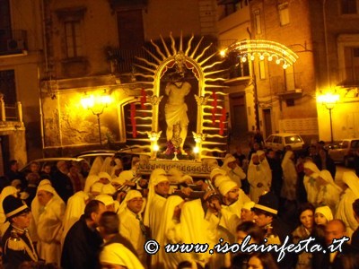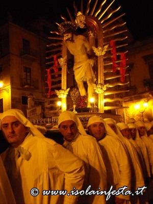 La processione è molto toccante e coinvolgente perchè il simulacro procede lentamente nel suo passo, proprio per rappresentare la sofferenza del Cristo che a stento riusciva a camminare per le profonde ferite e il forte dolore che egli aveva in quelle ore della sua passione, ed inoltre viene fatto dondolare come se stesse camminando lentamente. Poi quei “lamenti” intonati che creano un clima di dolore e commozione, le marce funebri ed il vedere la gente scalza e penitente che cammina, trasmette nel fedele che partecipa alla processione un sentimento di compassione, partecipazione e di condivisione alle sofferenze di Cristo.