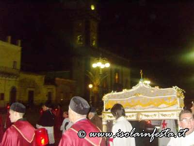 Il Giovedì Santo, viene celebrata la solenne Eucaristia “in Coena Domini” in tutte le chiesa del paese, in cui si svolge il rito della “lavanda dei piedi” e a conclusione si svolge la processione interna con il SS. Sacramento fino all’altare della reposizione in cui la pisside viene riposta ed inizia l’adorazione continua fino alle ore 24:00.