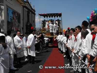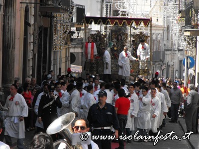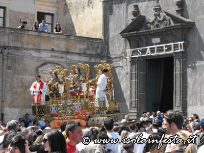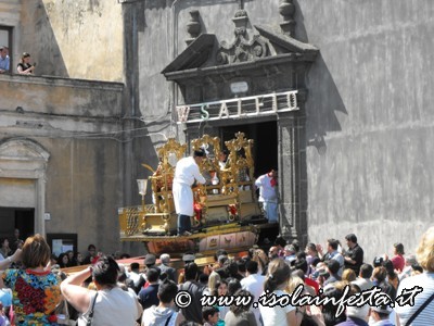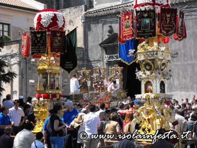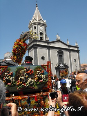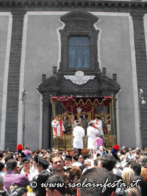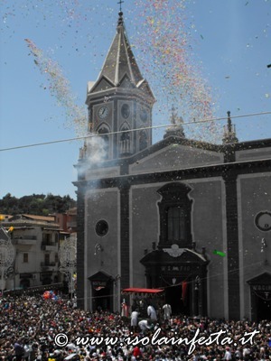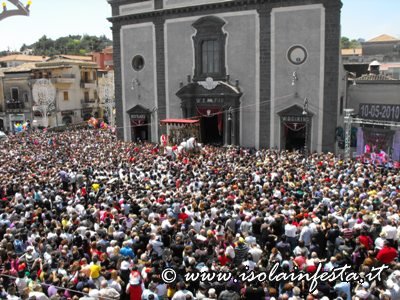 Ecco il giorno della festa, finalmente da parte dei devoti l’attesissimo “giorno santo” è arrivato; dopo nove giorni di preparazione spirituale con il solenne “novenario” oggi finalmente, dopo un anno, tutti quanti rivedranno i Santi Martiri Alfio, Filadelfo e Cirino trionfanti e splendenti di luce, quella di Cristo, sull’altare maggiore; oggi avverrà l’incontro tra i devoti ed i loro santi protettori, ringraziandoli per le grazie ricevute o chiedendo qualche grazia che se ne ha di bisogno.