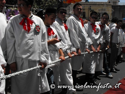 Tutti gridano e cercano di toccare i simulacri quando arrivano all’altezza della gente, vicino al fercolo.