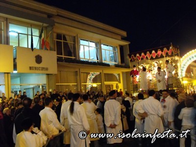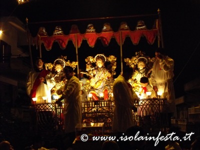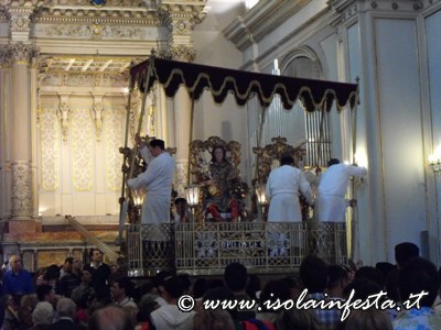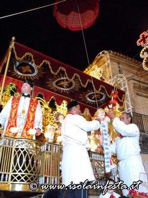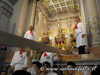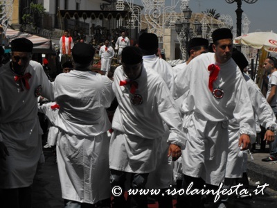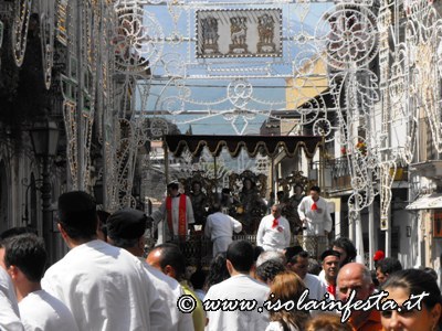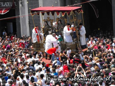 Dopo tutta la devozione espressa dai devoti “nudi” durante la notte, in arrivo a piedi dalle varie parti della provincia, adesso, alle ore 9,00 in punto, la commovente svelata che è, insieme all’uscita ed alla corsa alla matrice, il momento più bello ed importante di tutta la festa.