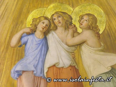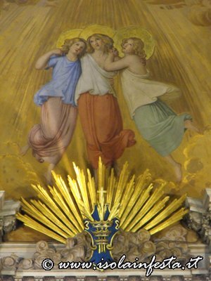 Ed in un attimo le tre figure dei Santi Martiri Alfio, Filadelfo e Cirino si espongono ai fedeli, splendenti di luce, sorridenti, benedicendo tutti.