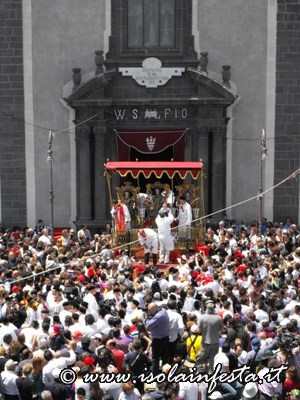 Quindi da oggi per tutto il mese Trecastagni è in festa perchè fino a quando i Santi Martiri saranno esposti sull’altare migliaia di pellegrini verranno in pellegrinaggio in Santuario, soprattutto nei fine settimana.