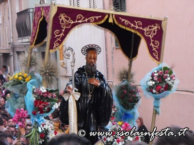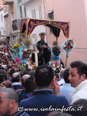 Nel pomeriggio, appena arrivano in chiesa madre le reliquie del Santo, il simulacro viene portato fuori dalla chiesa accolto dallo sparo dei fuochi d’artificio.