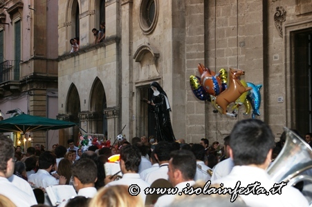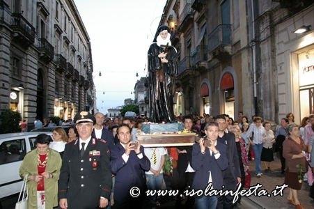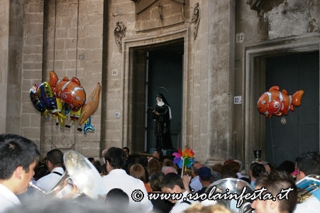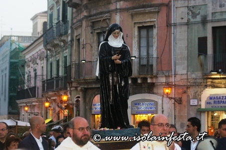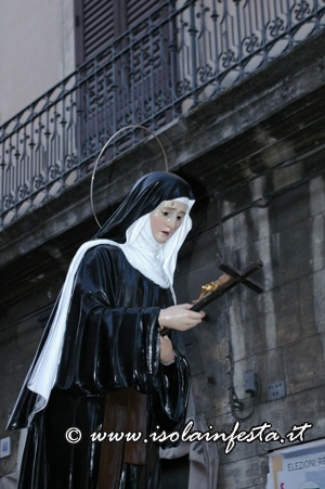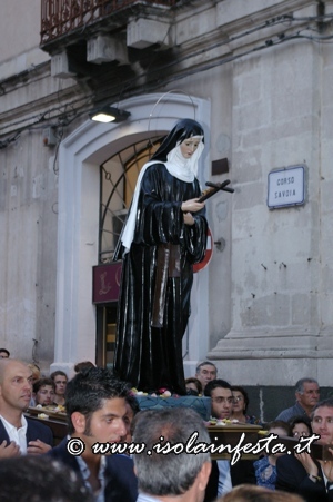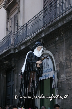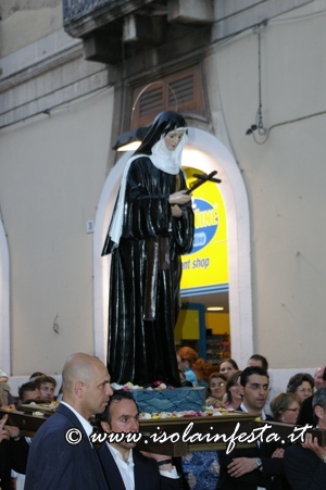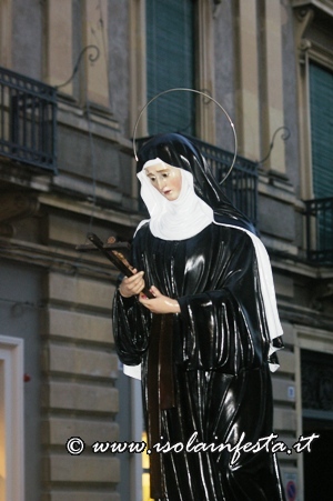 Dopo una ricca giornata di celebrazioni liturgiche in chiesa, nel tardo pomeriggio si snoda una partecipata processione religiosa per le vie del centro storico con il simulacro della Santa portato a spalla, tra canti e preghiere.