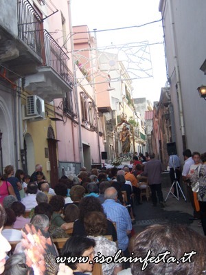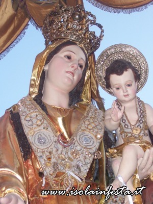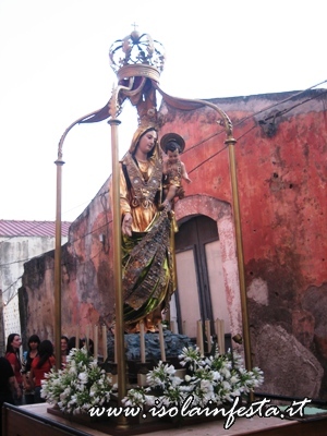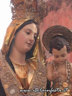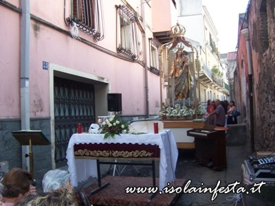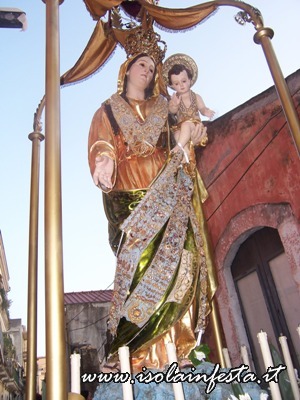 La domenica, giorno dedicato alla festa esterna della Madonna, dopo la S. Messa della sera celebrata all’aperto in via Gentile, il simulacro della Madonna, salutato dal suono delle campane, dallo sparo dei fuochi d’artificio e dalle marce suonate dalla banda musicale, compie il giro per le vie del centro storico.