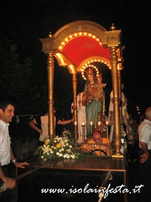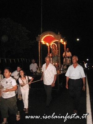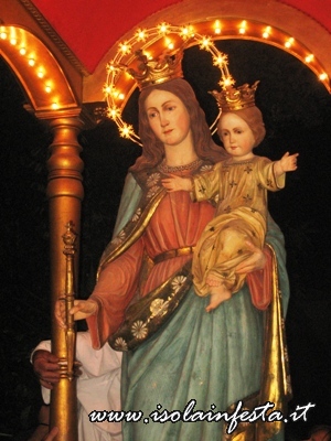 Dopo numerosi momenti di preparazione liturgica, il culmine dei festeggiamenti si hanno con la processione serale per le vie del paese, tra preghiera, note della banda musicale, e lo sparo dei fuochi d’artificio per le vie del borgo.