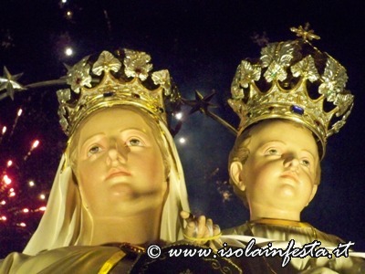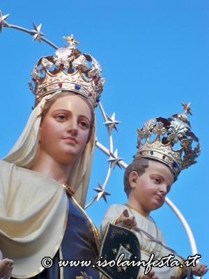 Alle ore 18,30 circa si ha la trionfale uscita della Madonna dalla chiesa, tra il suono delle campane, il lancio di carte multicolori, il suono della banda e lo sparo dei fuochi d’artificio.