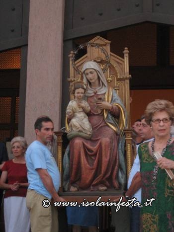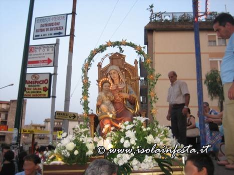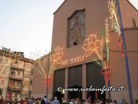 In preghiera con la madre Maria quindi è incominciata la processione per le vie del quartiere:Maria passa per le strade per benedire le case, i fedeli bisognosi e malati, i bambini e le famiglie; in tarda serata si è conclusa la processione con uno sparo di fuochi pirotecnici.