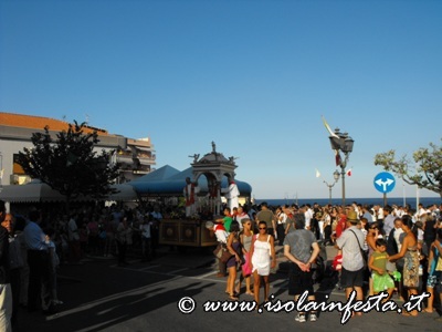 Il pomeriggio della domenica invece si svolge la solenne processione del simulacro del Santo per le vie del grande borgo marinaro, con uscita alle ore 18,00 e rientro in tarda serata, con spettacolo pirotecnico conclusivo sparato dal molto del porticciolo di Stazzo.