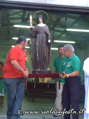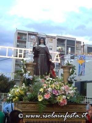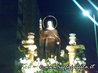Nel tardo pomeriggio dell’11 agosto, al termine della S. Messa vespertina, si snoda per le vie del quartiere la solenne processione con il simulacro della Santa, tra vie addobbate a festa dai residenti e lo sparo dei tradizionali fuochi d’artificio che fanno da contorno alla festa stessa.