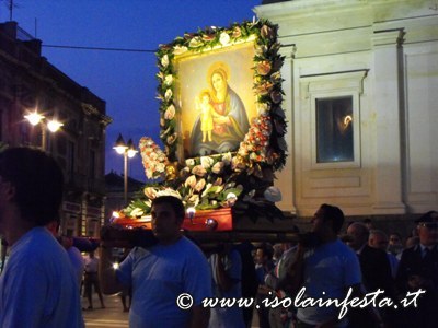 La sera della vigilia il dipinto della Madonna viene arricchito da ex-voto donati dai fedeli, e si svolge una processione con la copia del quadro che parte dalla chiesa madre ed arriva in Santuario per la S. Messa.