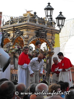 Infine la processione si avvia per le vie principali del paese per poi durante la serata avere una sosta in chiesa madre e la riapertura del carro dei devoti della matrice.