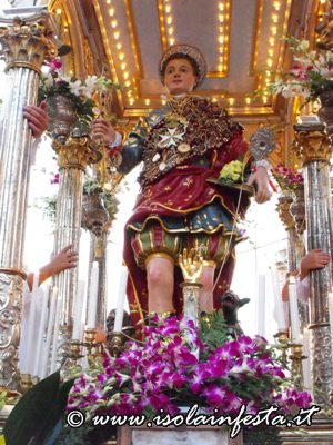 Oggi è il giorno della festa esterna, non della festa liturgica, quindi il Santo Patrono viene festeggiato con delle festività molto più pompose, con luminarie grandiose, carro, processione serale con l’artistica vara, e fuochi a volontà.