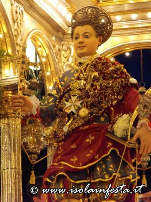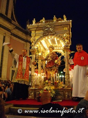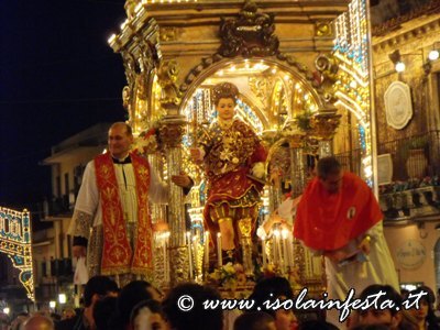 Oggi è il giorno della festa esterna, non della festa liturgica, quindi il Santo Patrono viene festeggiato con delle festività molto più pompose, con luminarie grandiose, carro, processione serale con l’artistica vara, e fuochi a volontà.
