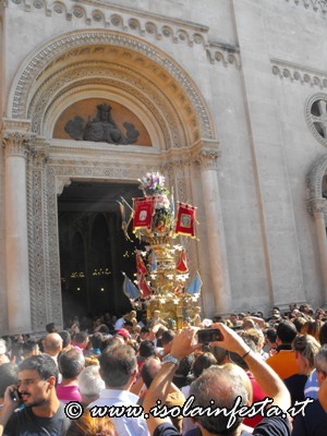 Alle ore 9,00 circa, quando il sole irradia la città, S. Antonio, portato a spalla dai devoti, varca il portale della chiesa.