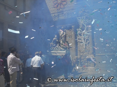 La festa parte al Mattino a colpi di cannone che risvegliano il paese. Alle 11:30 comincia la festa. La processione parte dalla chiesa del Carmine per attraversare via Roma, via della regione, e le strette vie del paese sino in duomo. Da duomo la Processione del simulacro gira per arrivare nella chiesa di San Sebastiano per rendere omaggio al santo patrono di Cerami. Subito dopo al rullo dei tamburi e sulle note della banda musicale la processione scende verso l’Abbazia di San Benedetto, dove il simulacro rimane sino alla sera.