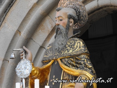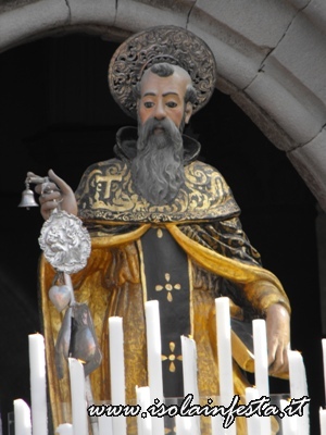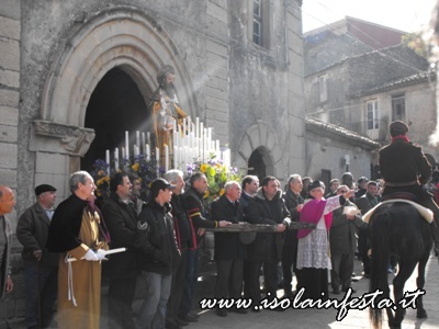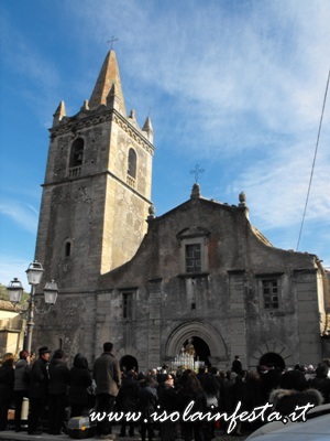 L’interno è suddiviso in tre navate, segnate da 10 colonne in pietra arenaria di estrazione locale costituite da un unico blocco e sormontate da altrettanti capitelli uguali tra loro a due a due. La Sua festa si celebra il 17 gennaio, (se cade di domenica, altrimenti è rimandata alla domenica seguente) ed è preceduta dalla “Settena”, sette giorni di preparazione, durante la quale si recitano le preghiere e si cantano Inni dedicati al Santo.